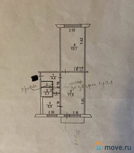 Кухня 5.5 кв.м.(остается кух.гарнитур).